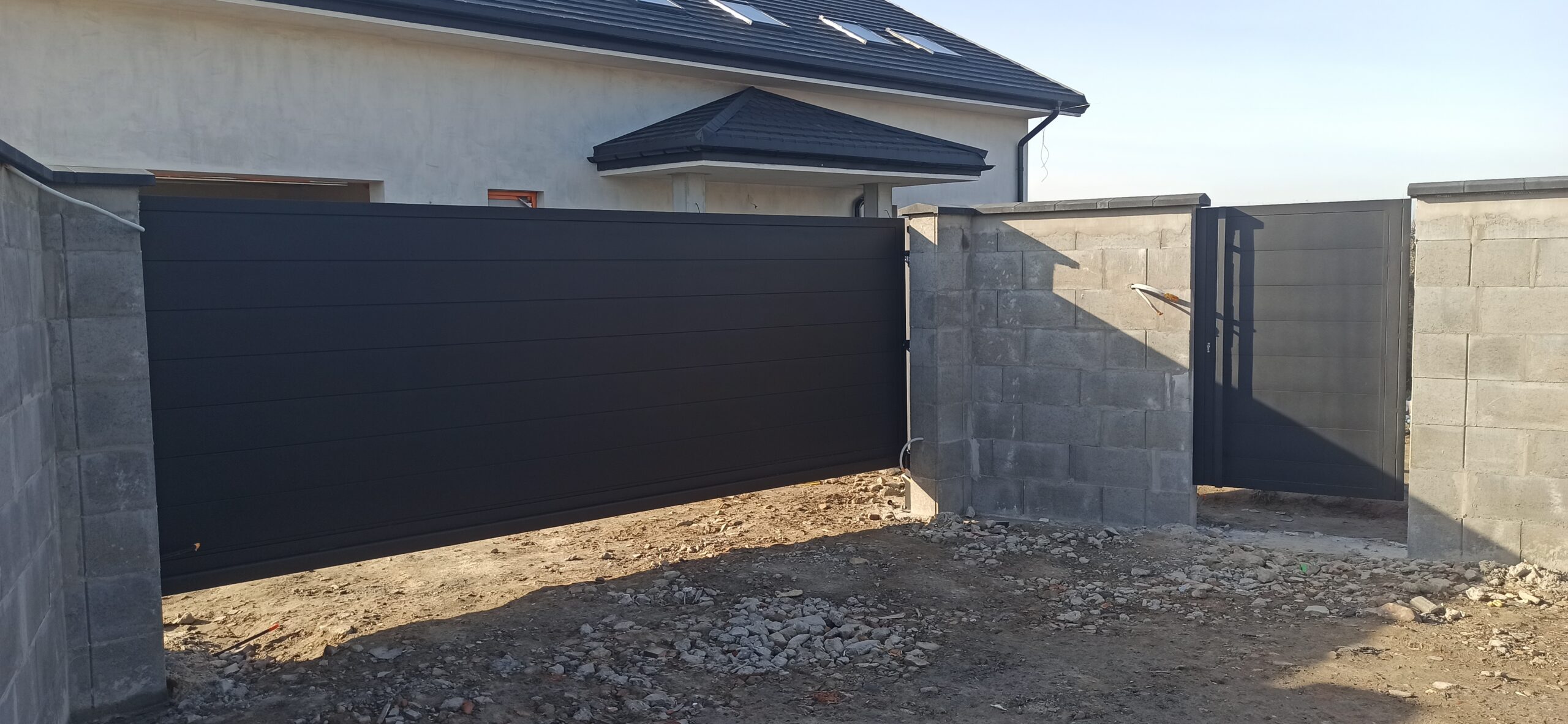 Bramy przesuwane wyróżniają się nowoczesnym designem i praktycznością, idealnie nadając się do posesji z ograniczoną przestrzenią – przesuwają się równolegle do ogrodzenia, oszczędzając miejsce.